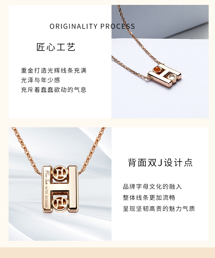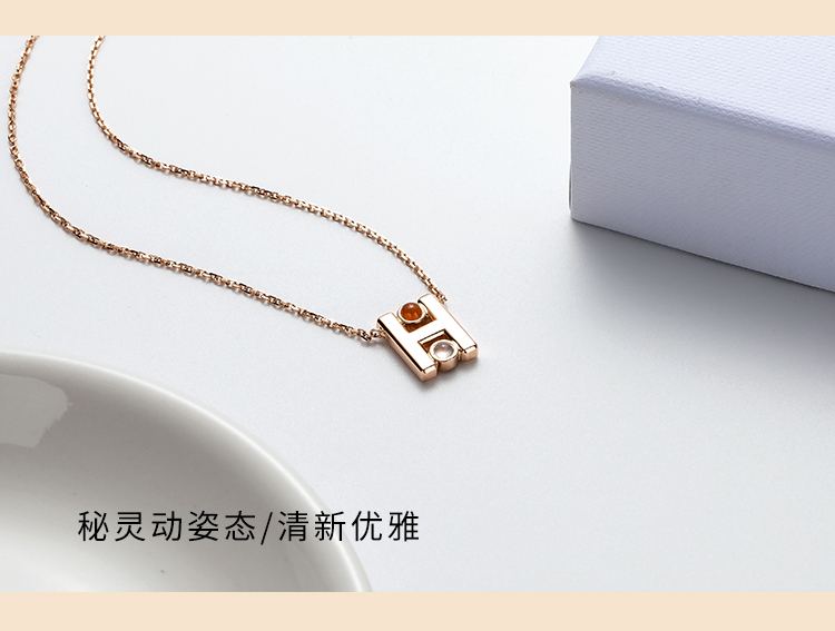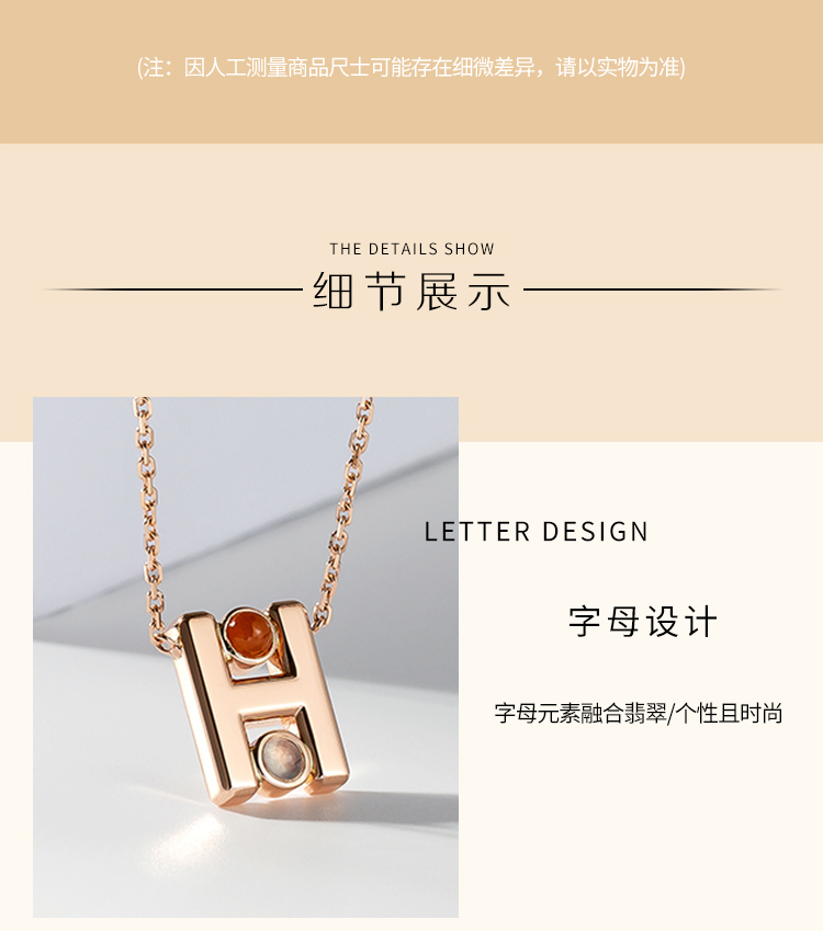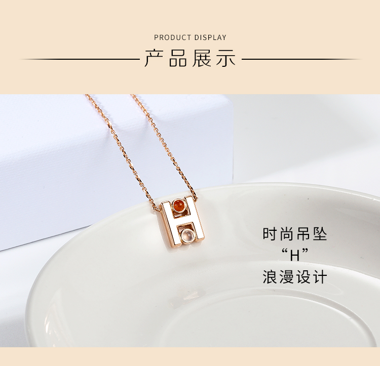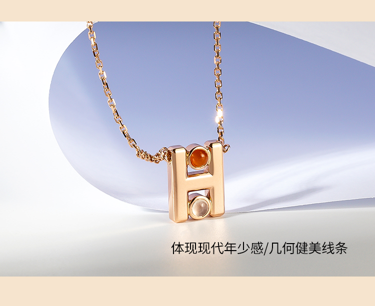 HouJade THE “H” COLLECTION 18K玫瑰金“ H ”翡翠项坠