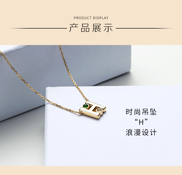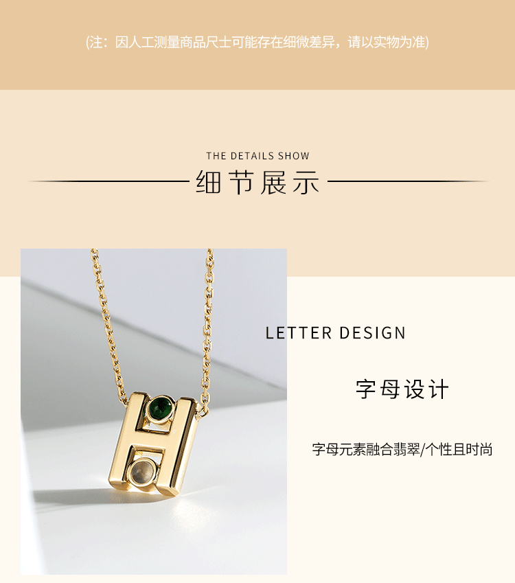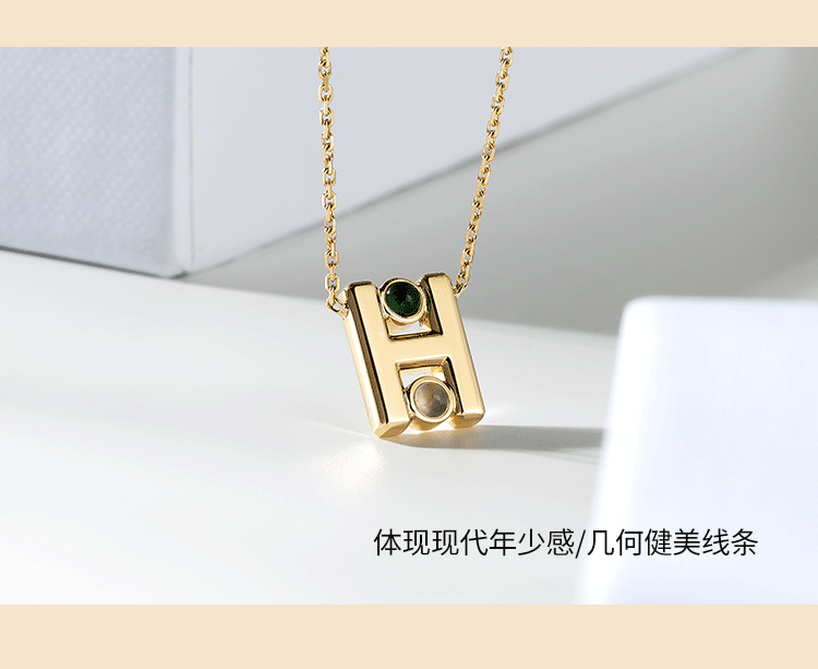 HouJade THE “H” COLLECTION 18K玫瑰金“ H ”翡翠项坠