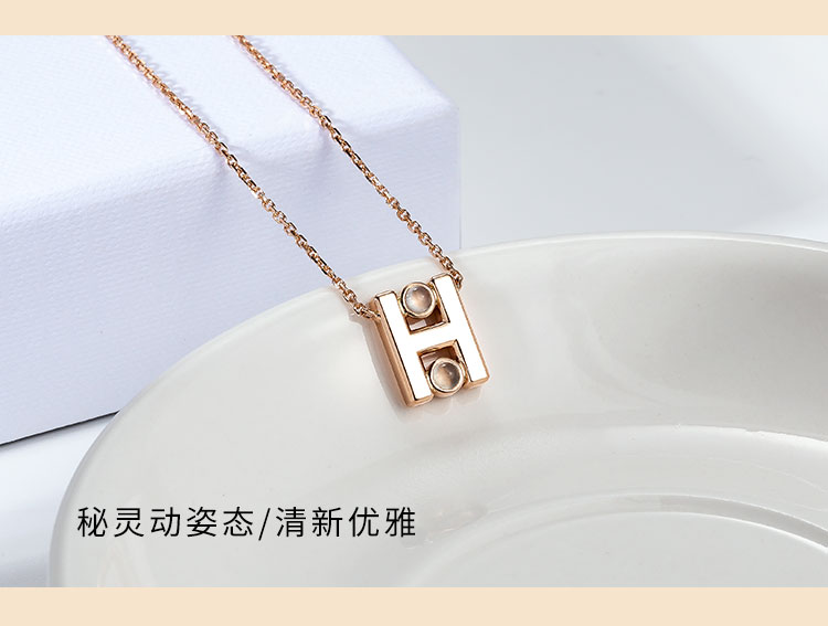 Hou Jade THE "H" COLLECTION 18K玫瑰金“H”翡翠项坠