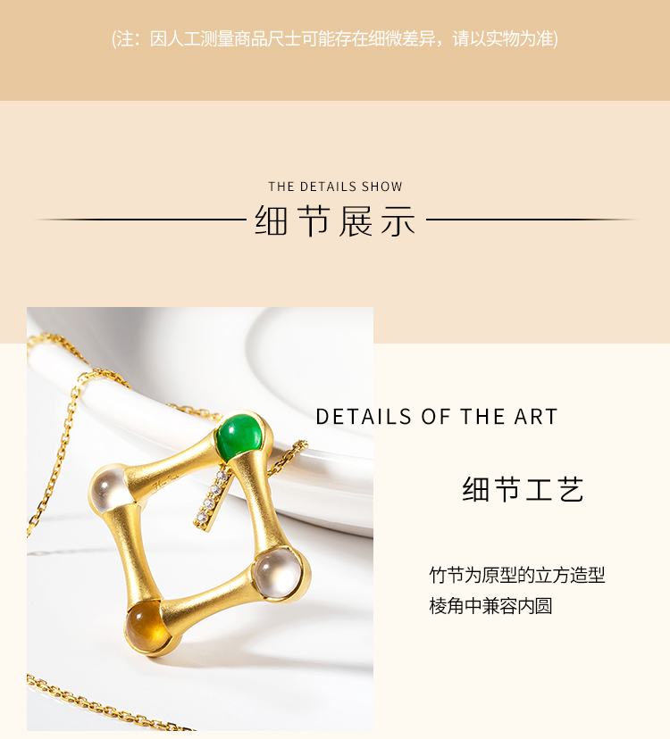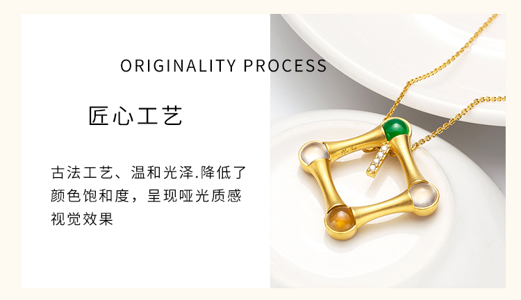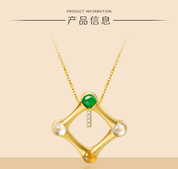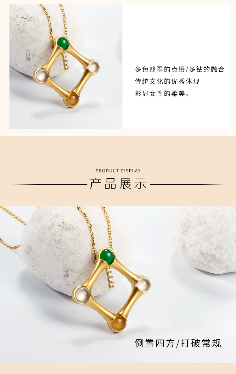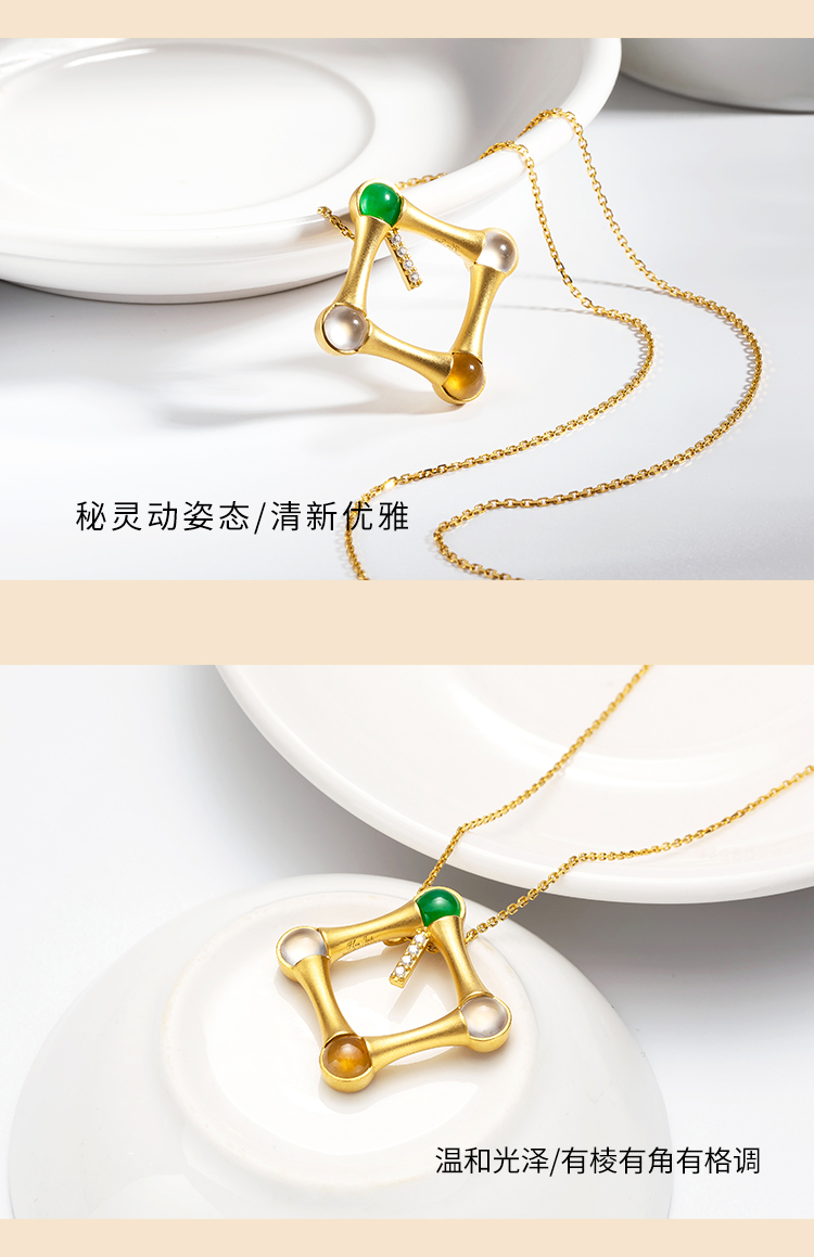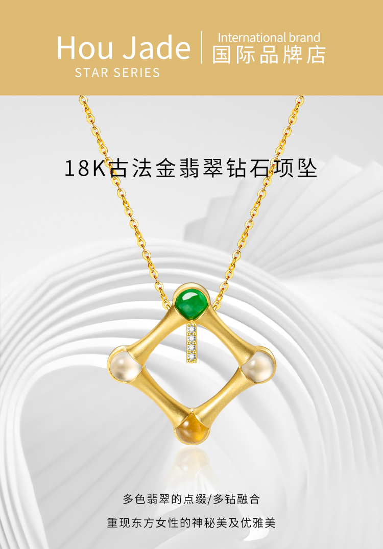 Hou Jade THE BAMBOO JOINT COLLECTION 18K黄金翡翠钻石项坠