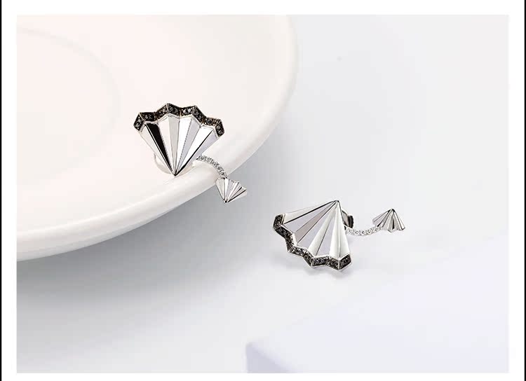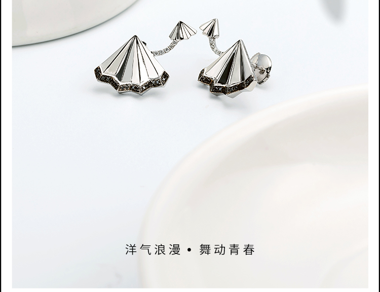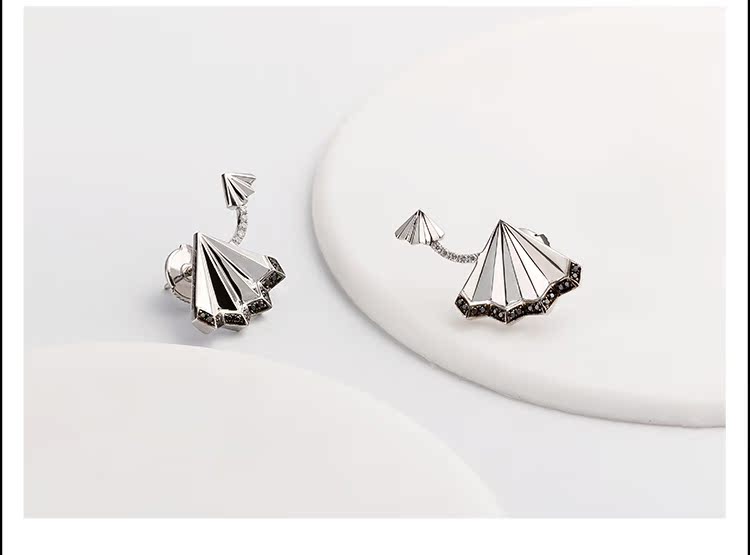 Hou Jade THE FOLDING FAN COLLECTION 18K白金折扇耳钉